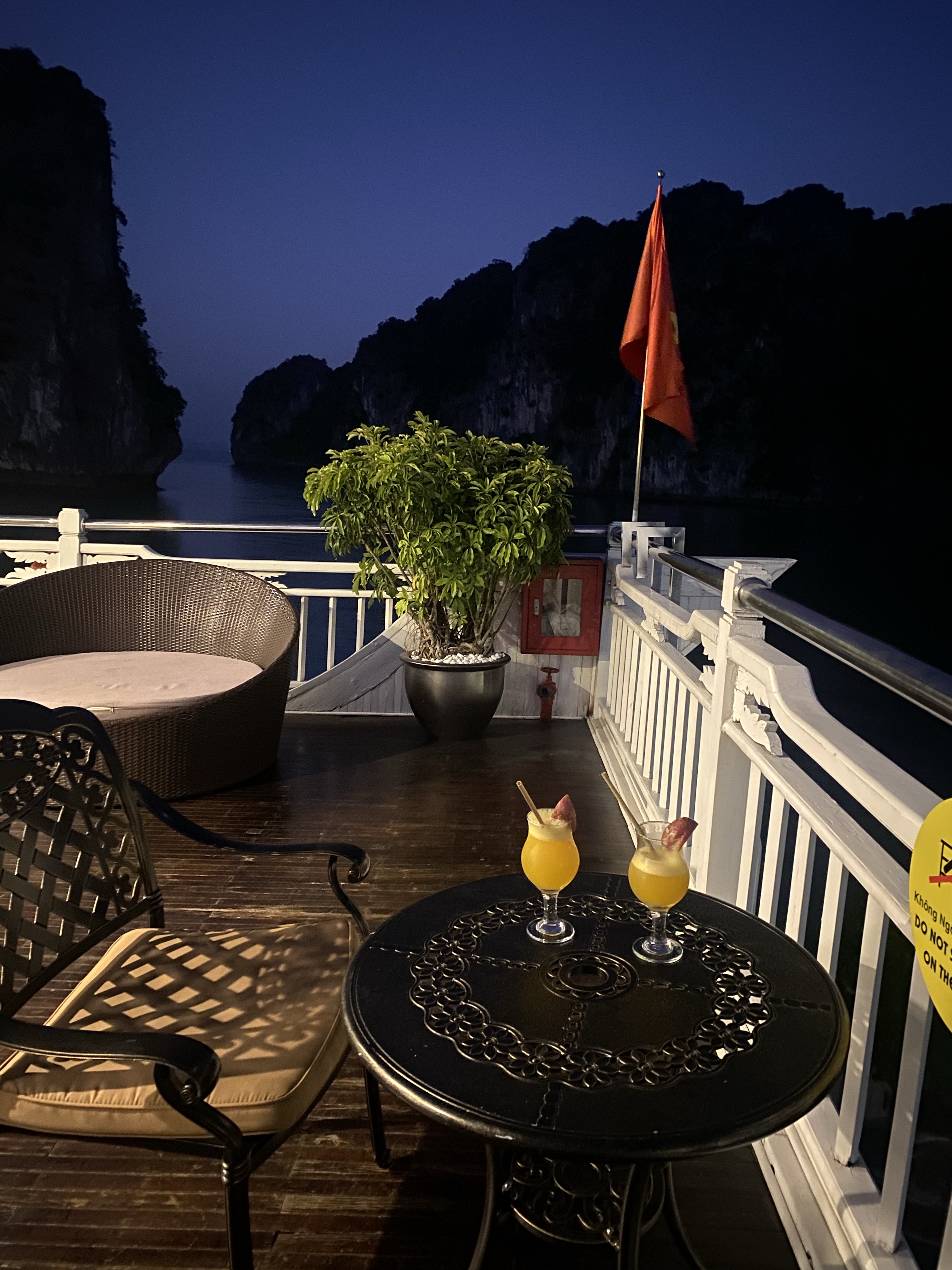 We took a rest after the boat adventure and ended up chatting so much that we forgot our plan to watch the sunset. By the time we went onto the deck of T he boat, it was already twilight. And almost time for dinner.