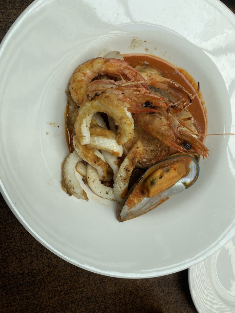 I’d made the mistake of requesting a seafood meal. This meant a tasteless meal of salmon with pasta, while D had what she described as the best airplane food she ever had, which was Korean food. I don’t know why I ordered a seafood meal; some misguided reflex from when I was pescatarian I guess.