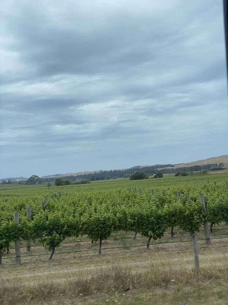 We had tickets to take the train from Christchurch to Picton. However, the night before, calamity struck. I can’t tell you the nature of the calamity, and trust me, I’m not being evasive. The problem is that I sometimes have trouble understanding what people are saying here. And so, I do know that no one was hurt but something happened and the train was not okay. Our best option was to take the replacement bus and accept a 50% refund on the price of the train.